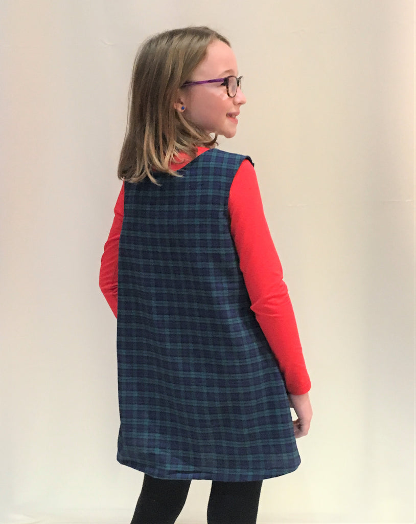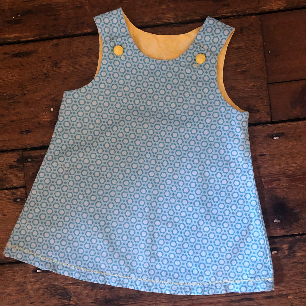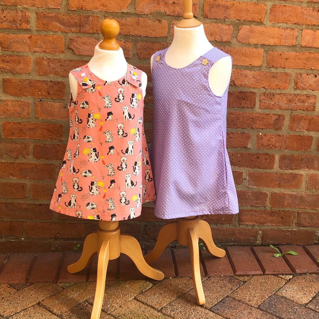 A super cute and simple to make pinny dress pattern for kids age 1-8 years.  This pattern is ideal for new sewers and even for kids with an interest in sewing too!