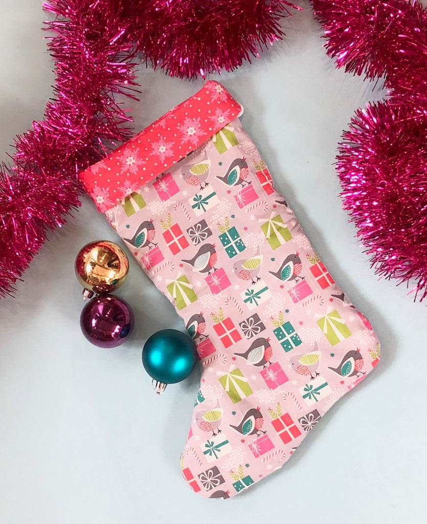 Using just three fat quarters of non-directional fabric, you can whip up a stocking in no time. Add optional wadding for extra softness, and finish with a contrasting cuff for a professional look.